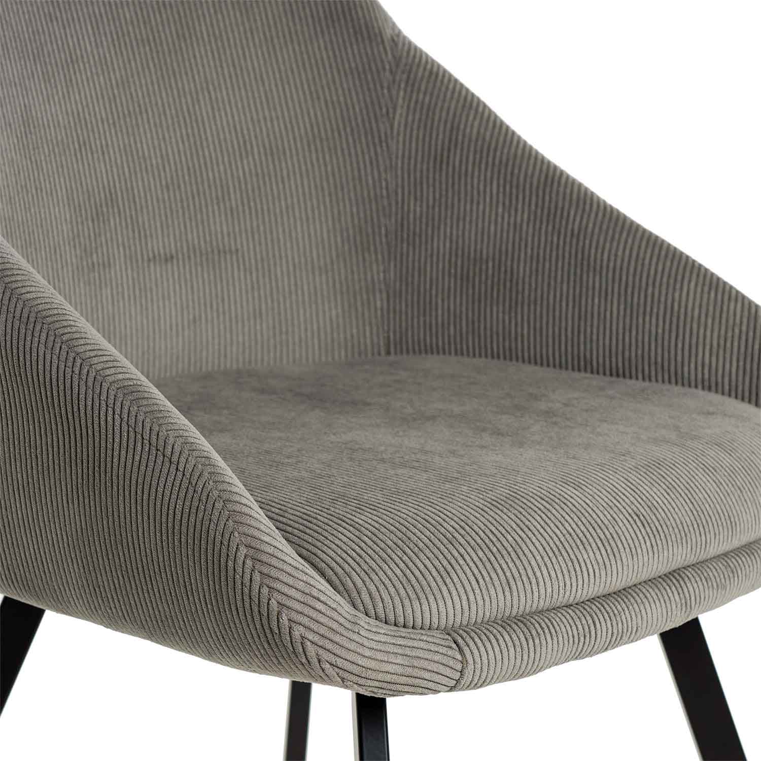 MACIE-stolen är klädd i ett mjukt manchestertyg i ljusgrått, den är behaglig att ta på och lätt att rengöra, vilket gör den perfekt för daglig användning.
