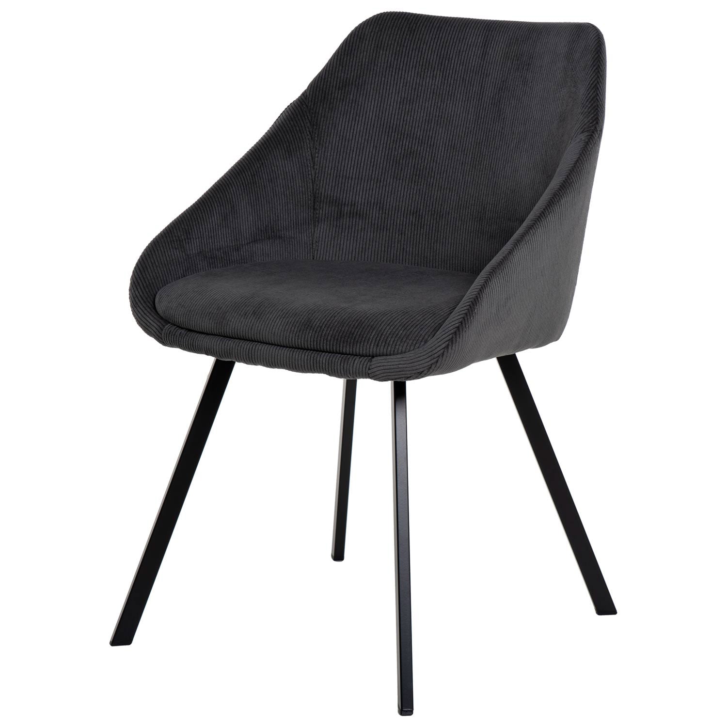 Dess eleganta och moderna design inkluderar svarta metallben, som inte bara ger en touch av sofistikering utan också säkerställer stor stabilitet. Det böjda ryggstödet och sätet är utformade för att ge optimal komfort och anpassar sig till kroppens form för att ge ergonomiskt stöd.