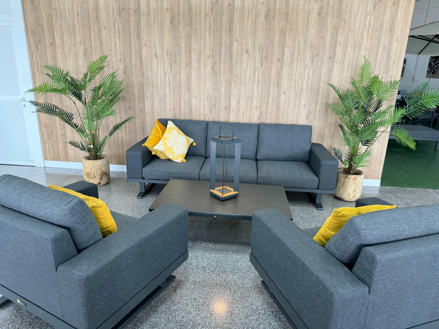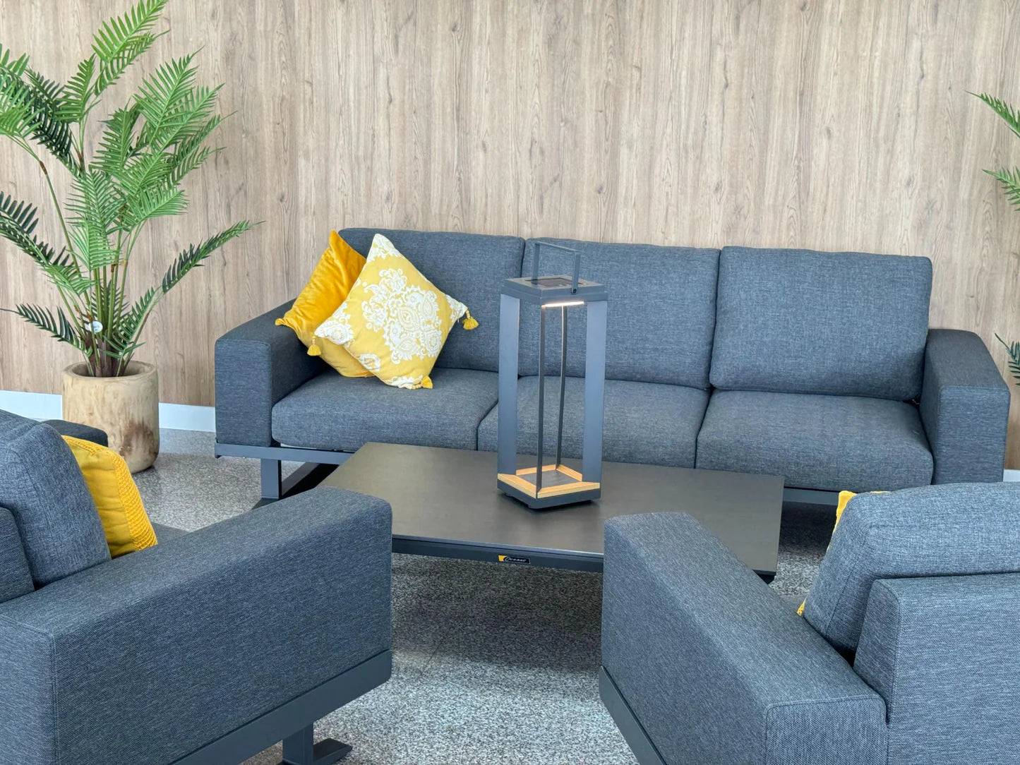 Vi presenterar Monaco 3-sits soffset – din ultimata destination för avkoppling utomhus. Tillverkad med hållbarhet och stil i åtanke. det här setet kombinerar en robust aluminiumram. plyschkuddar och texelinelindade armar för en oöverträffad loungeupplevelse. Sjunk in i lyx med de djupa kuddarna och njut av stödet från de tjocka armarna och den höga ryggen. perfekt för att varva ner efter en lång dag. Designade för att motstå väder och vind. de texelinelindade armarna garanterar både stil och hållbarhet. Plus. med det medföljande väderskyddet förblir ditt set skyddat mot sol. regn och mer. vilket säkerställer dess livslängd. Förhöj ditt utomhusliv med Monaco 3-sits soffset.