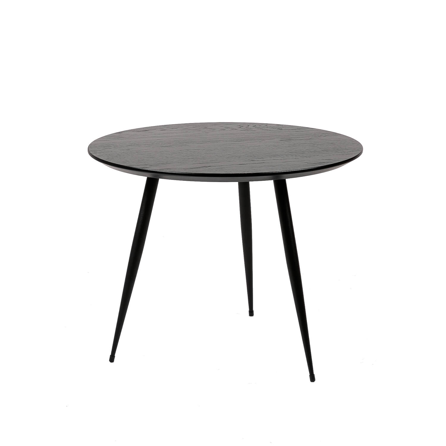 Runt soffbord med ø 50 cm skiva i svarttonad plåt och koniska ben i svart metall. Perfekt att följa med Scott Black soffbord (MC5041-11) Obs: säljs separat