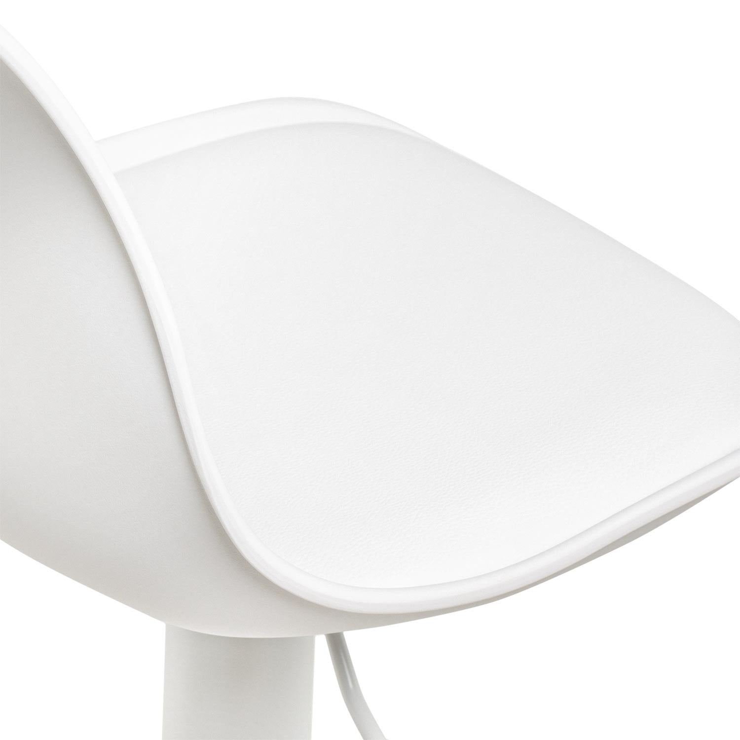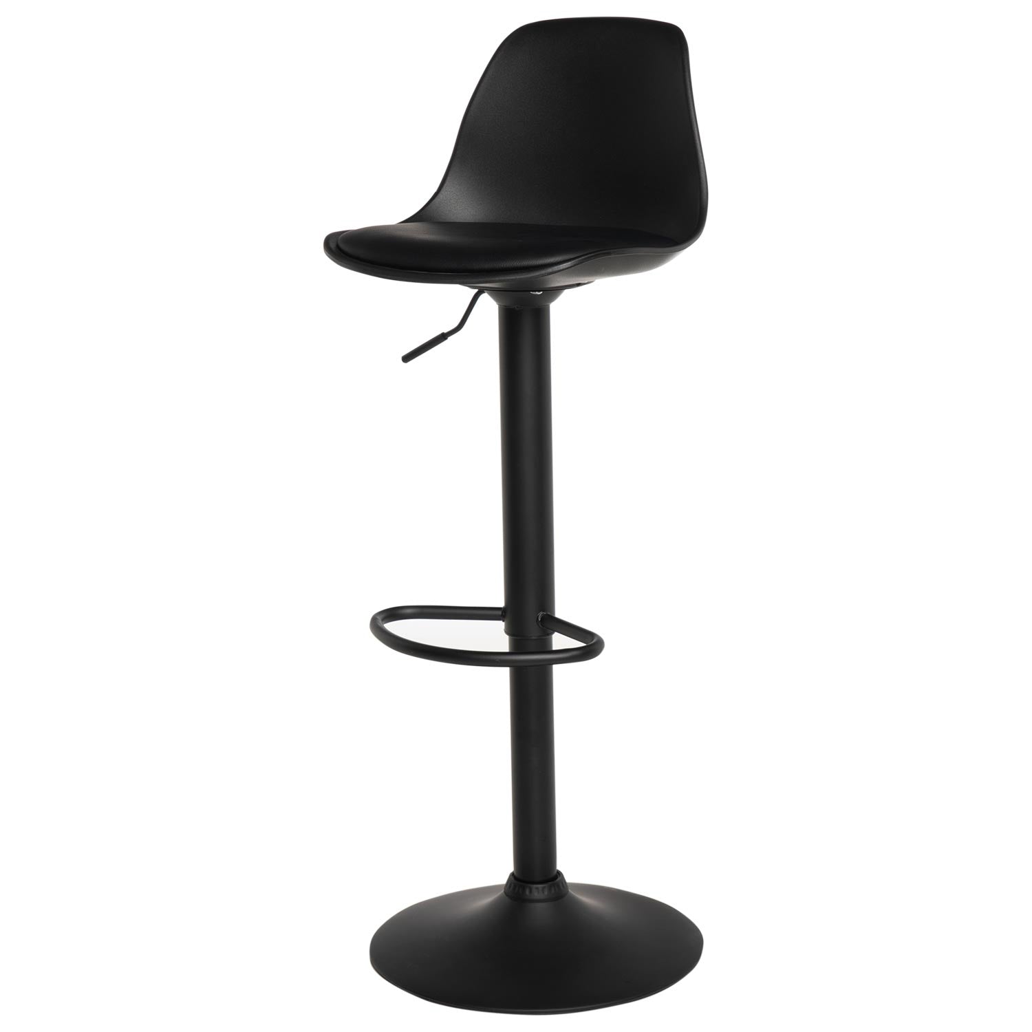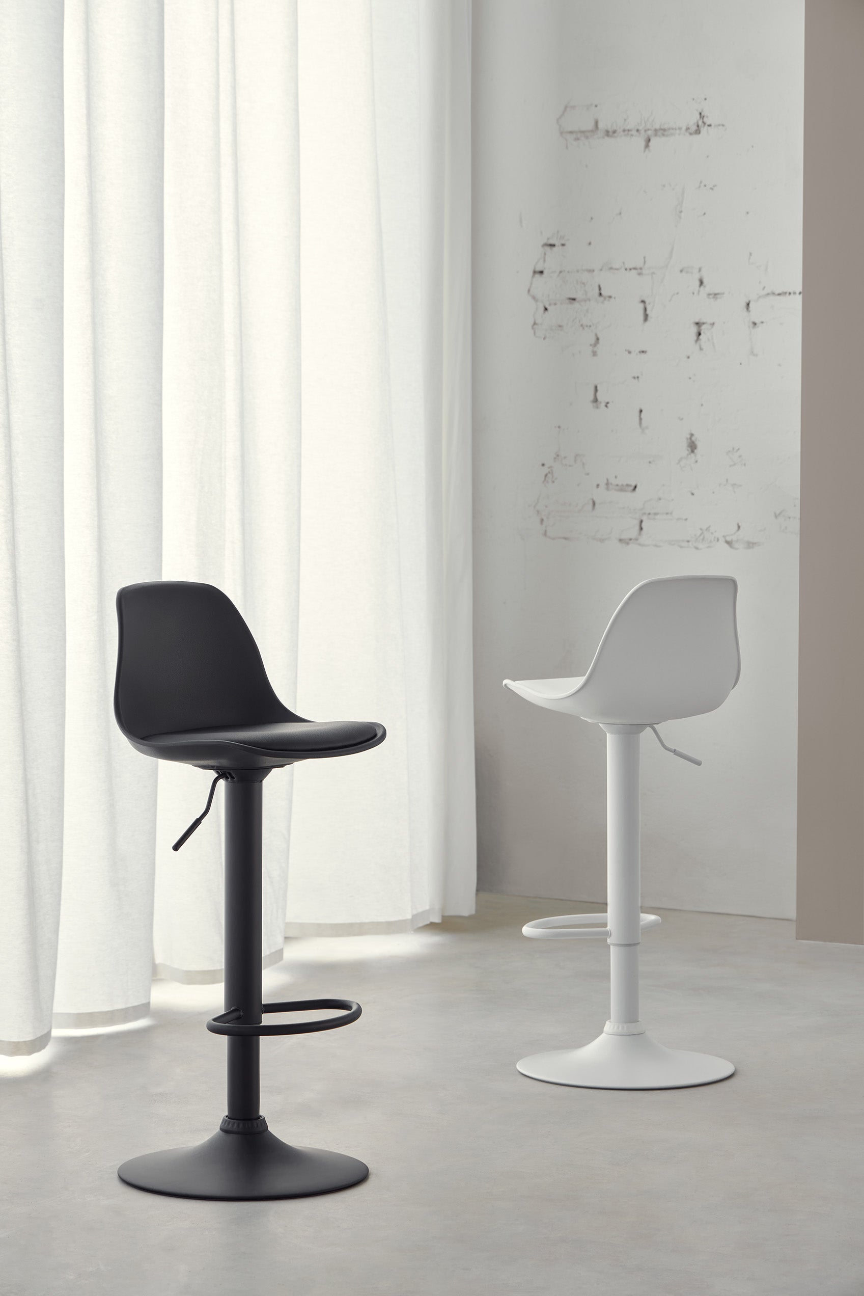 Barstolen består av ett vadderat säte och konkavt ryggstöd av polypropen, designat för att erbjuda komfort vid dagligt bruk.