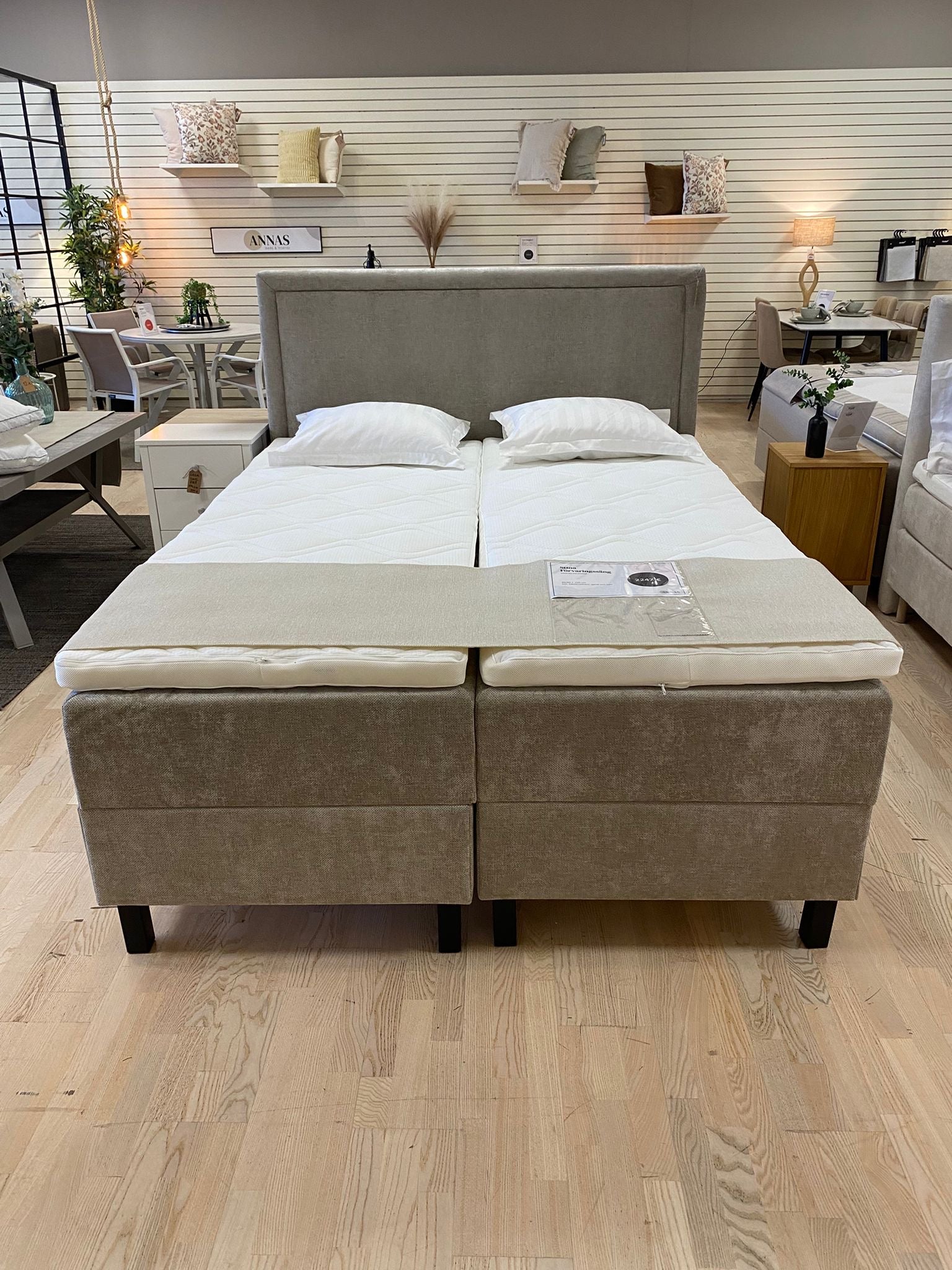 Det går alldeles utmärkt att ställa sängarna var för sig då de är tygklädda runt om. Vill man ställa två bredvid varandra med en hel bäddmadrass så blir känslan och designen lite mer som en kontinentalsäng.