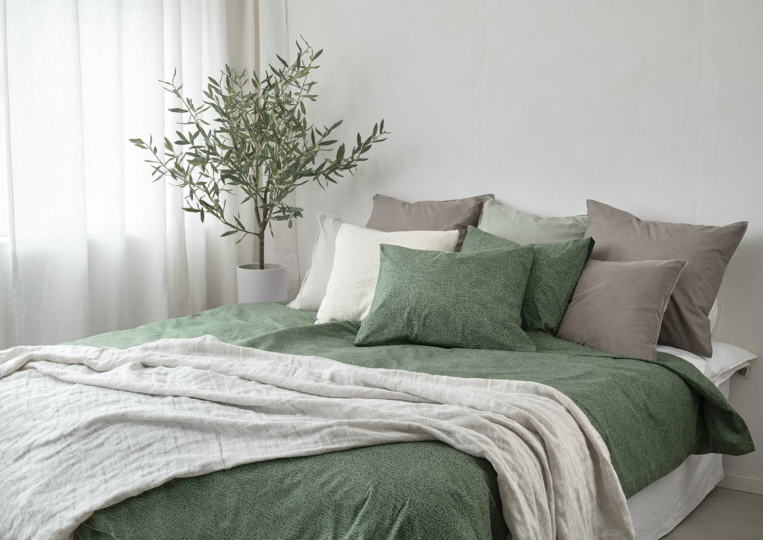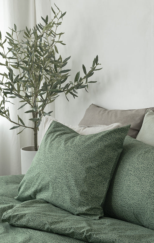 Bäddset bestående av ett örngott och ett påslakan. Bäddsetet har ett tryckt mönster och är tillverkat i mjuk och skön bomullskvalitet. Borganäs bäddset finns i flera olika mönster för både enkel- och dubbelsäng.